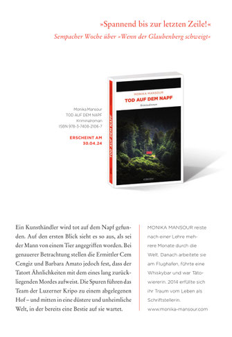 Cem Cengiz und sein Team der Luzerner Kripo werden diesmal in einem Umweltskandal rund um den Sempachersee ermitteln. Mehr darf ich noch nicht verraten. Nur so viel: es wird emotional und super spannend!